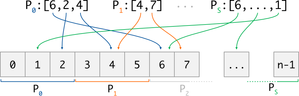 GlobalIndexerwhere each process can request access to several lists of global indices.We thus need to introduce the additional notations, which are local for each rank: